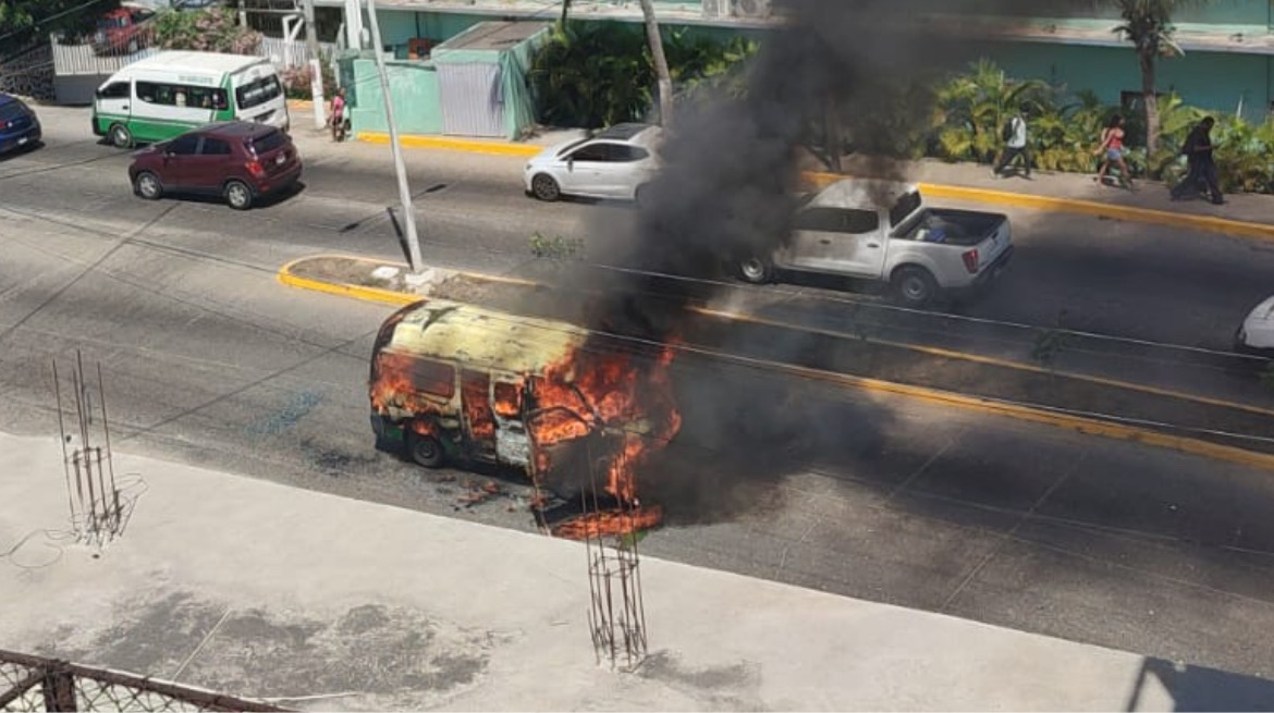 Minutos antes de las 12 del mediodía, una urvan de servicio de transporte público fue incendiada en la avenida Pie de la Cuesta, en la zona de Mozimba.