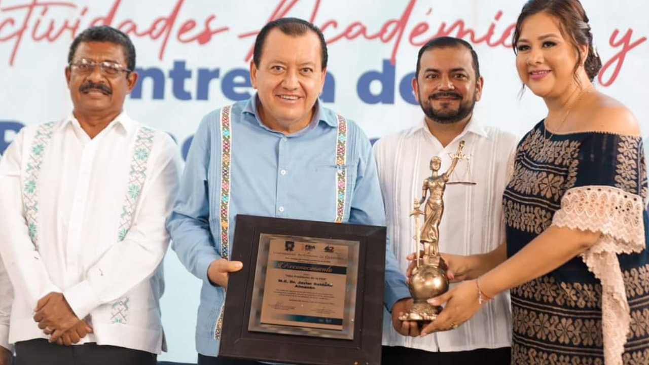 Acapulco. — Con el compromiso de sólo proyectar la carrera política de Javier Saldaña Almazán, exrector de la Universidad Autónoma de Guerrero (UAGro), la Facultad de Derecho en Acapulco, le entregó un reconocimiento por su trayectoria académica, y su vez inauguraron la Sala de Juicios que llevará su nombre.