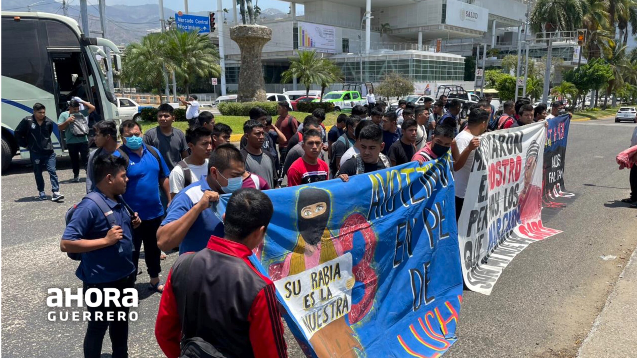 Los estudiantes se colocaron en la avenida turística, para exigir al Gobierno Federal el paradero de los 43 estudiantes desaparecidos.