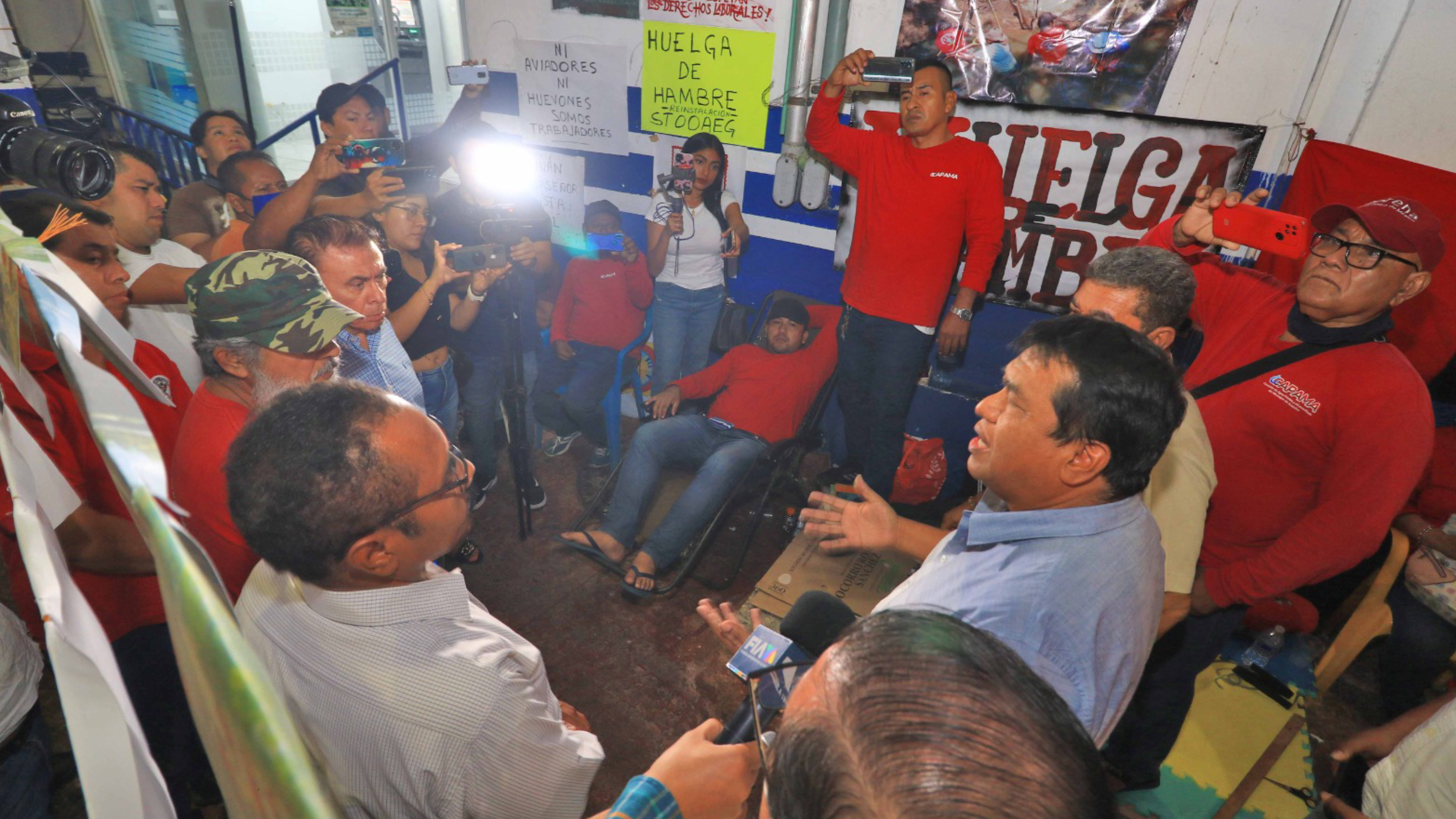Acapulco, Gro., 07 de febrero de 2023.– A fin de reanudar el diálogo con los ex trabajadores de la Comisión de Agua Potable y Alcantarillado del Municipio de Acapulco (Capama), funcionarios del Ayuntamiento, encabezados por el Coordinador de Asesores, René Lobato Ramírez, visitaron al grupo inconforme que se encuentra en huelga de hambre en las afueras de la paramunicipal, acordando una mesa de trabajo mañana miércoles.