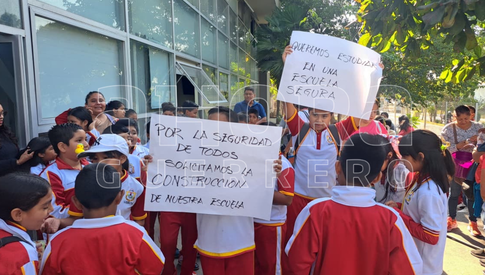 Alumnos, padres de familia y maestros de la escuela primaria “Crescencio A. Miranda”, protestan en las oficinas del Instituto Guerrerense de la Infraestructura Física y Educativa (IGIFE), para exigir la reconstrucción del plantel escolar.