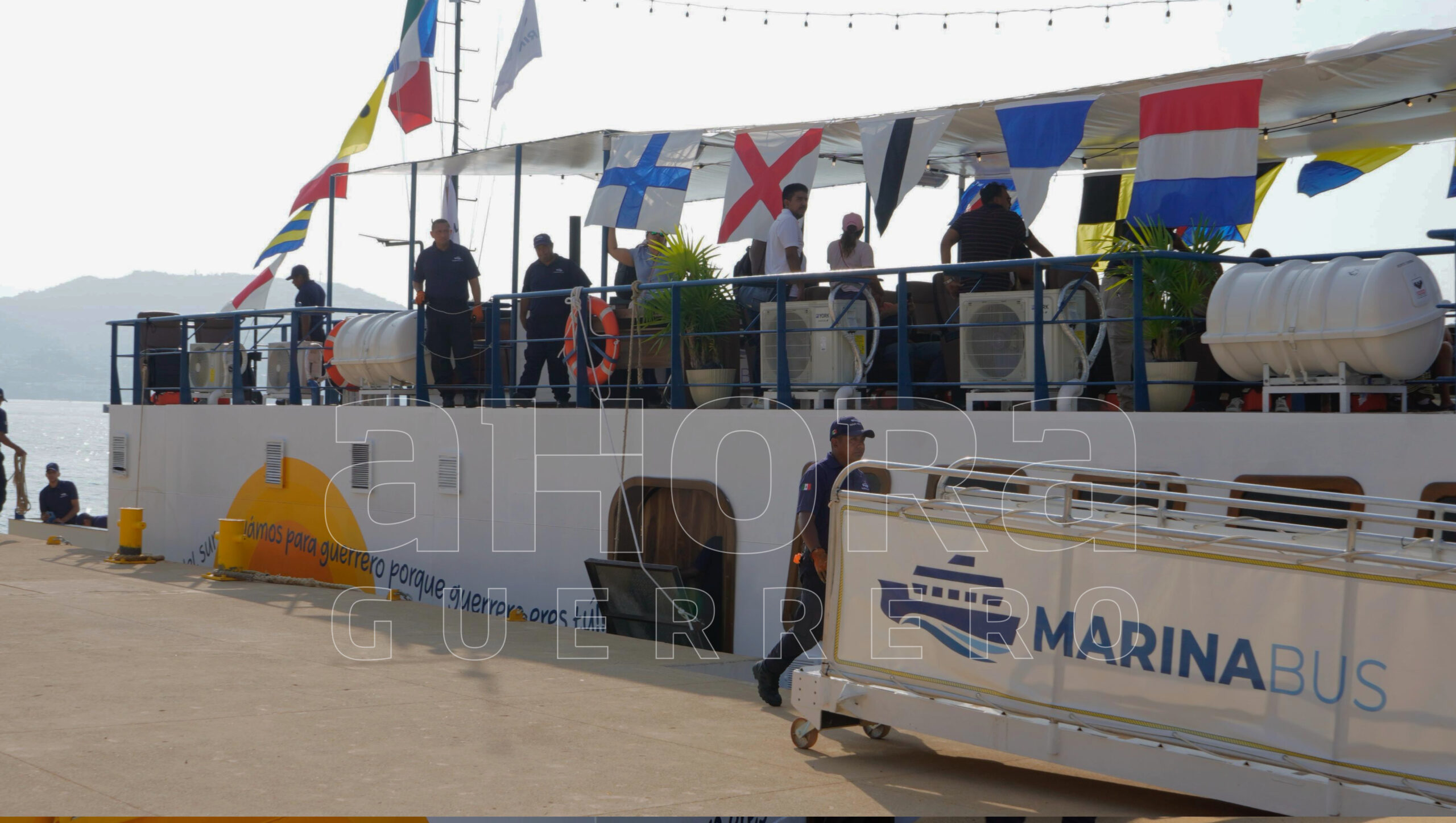 Acapulco, Gro., 1 de noviembre de 2025.— El “Marinabús” suspendió su inicio de actividades tras no poder concretar su primer recorrido turístico a Puerto Marqués, debido a que habitantes de ese poblado mantienen un bloqueo en el muelle público como medida de protesta contra el gobierno federal.