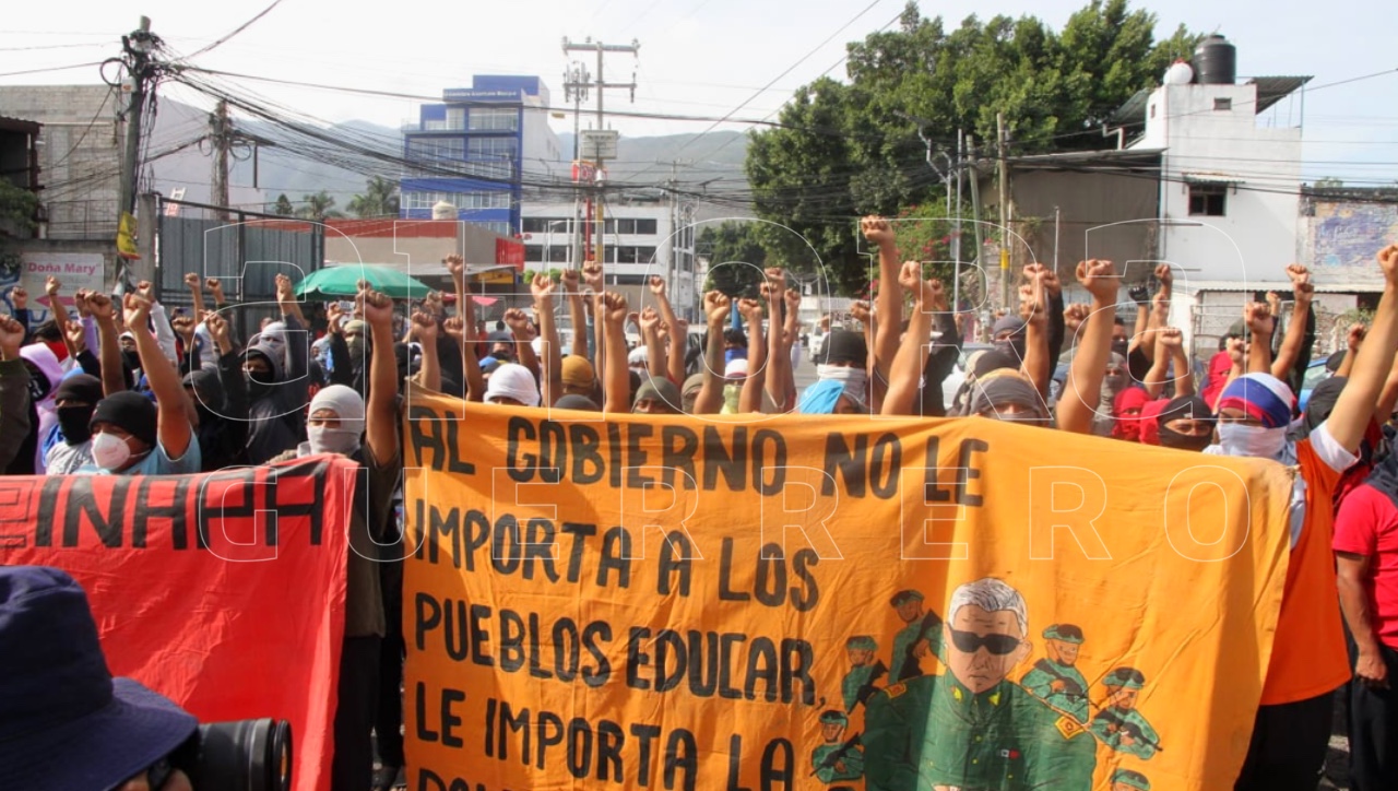 En el marco del 14 aniversario del asesinato de los estudiantes Alexis Herrera Pino y Gabriel Echeverría de Jesús, normalistas de Ayotzinapa protestaron frente al Congreso del Estado de Guerrero, para reclamar falta de justicia.