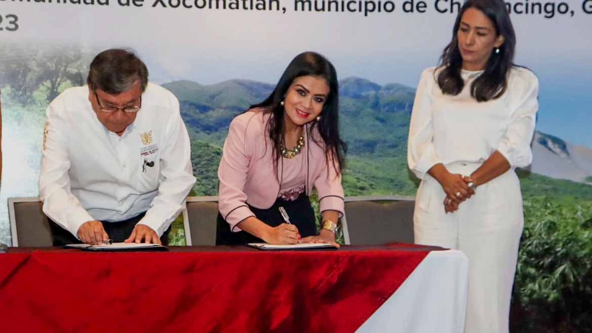 A la firma de convenio para este proyecto piloto también asistieron Felipe Obando Martínez, Comisario de Xocomanatlán; Gabina Pérez Carmona, directora General de Medio Ambiente Prevención y Contaminante del Agua; Norma Arroyo Domínguez, directora de Conagua Guerrero, Carolina Rodríguez García, así como representante de los tres órdenes de gobierno e invitados especiales.