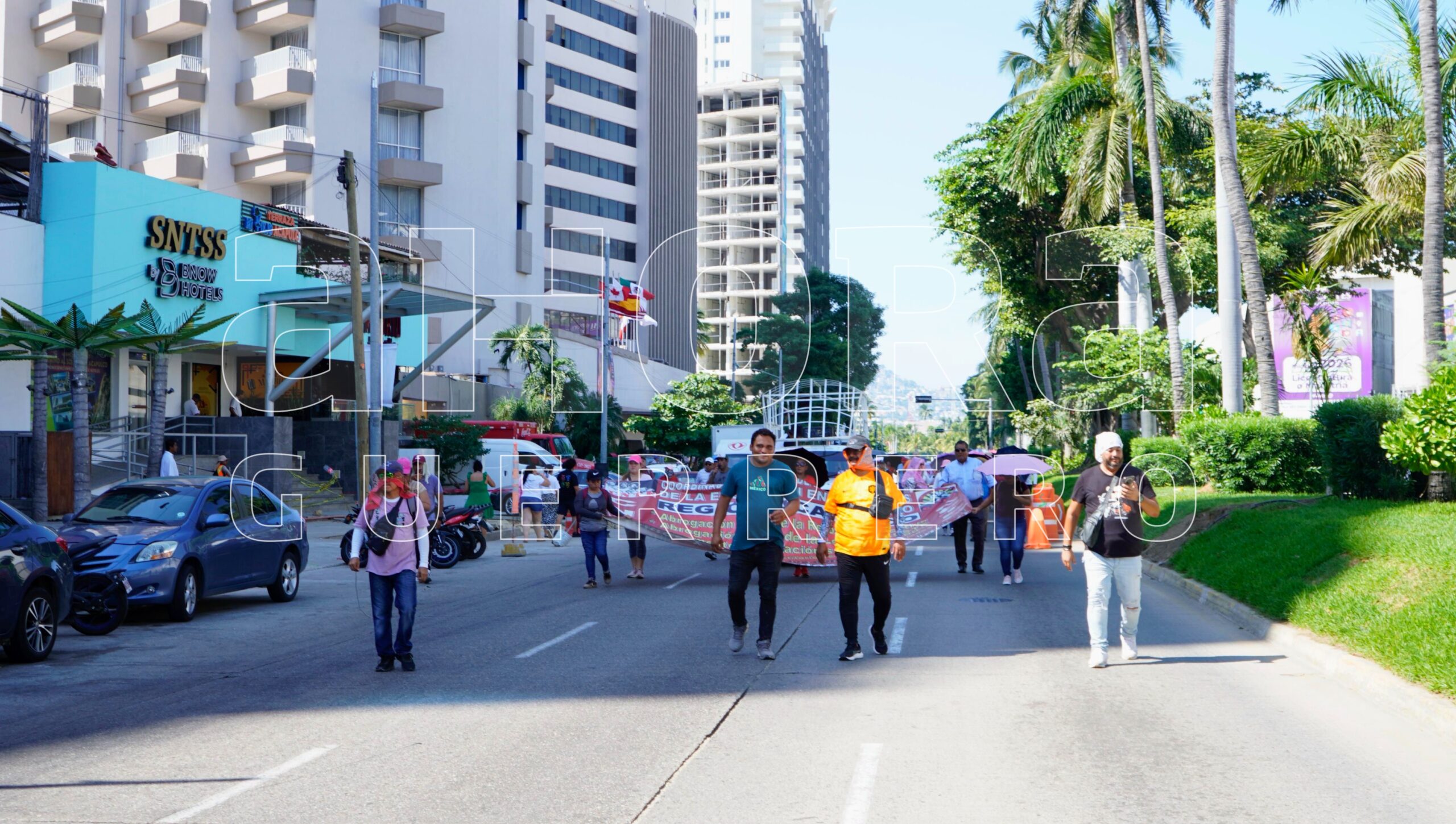 Acapulco, Gro., 13 de noviembre de 2025.– Unos 200 integrantes de la Coordinadora Estatal de Trabajadores de la Educación en Guerrero (CETEG) realizaron una marcha sobre la avenida costera Miguel Alemán la mañana de este jueves, lo que generó un severo caos vial y afectó a miles de automovilistas y usuarios del transporte público.