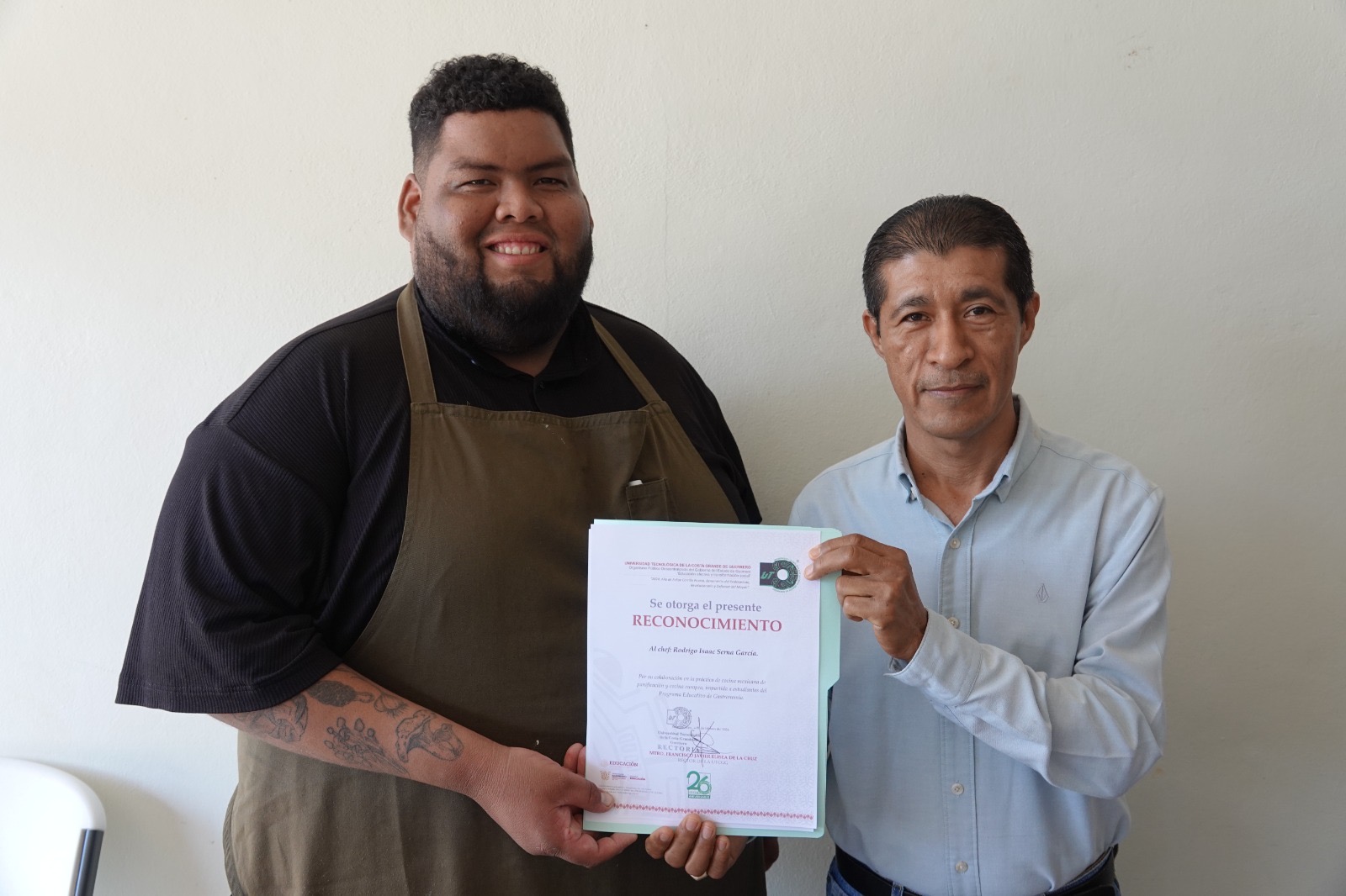 Francisco Javier Elisea de la Cruz, rector de esta máxima casa de estudios, realizó la entrega de un reconocimiento a Serna García por su aportación de conocimientos y experiencia en el sector gastronómico y reconoció en su persona el posicionar no solo a Zihuatanejo sino a todo Guerrero en el ojo de la cultura gastronómica internacional.