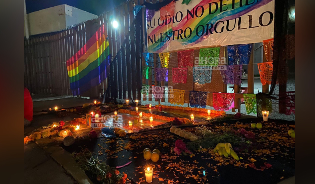 La tarde de este miércoles, integrantes del colectivo Orgullo Guerrero colocaron una ofrenda por el Día de Muertos a las afueras del Congreso del Estado en la que destacó la fotografía de Quetzalcoatl Leija, uno de los impulsores del matrimonio igualitario asesinado en el zócalo de Chilpancingo en mayo del 2011.