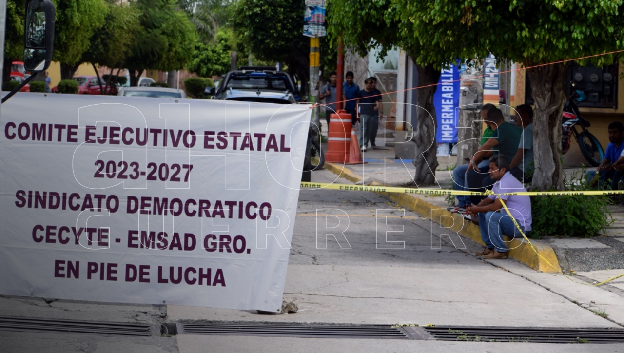 Con un bloqueo en la avenida Lázaro Cárdenas de Chilpancingo, integrantes del Sindicato Democrático del Centro de Estudios Científicos y Tecnológicos del Estado de Guerrero (CECyTEG), pidieron la salida de Anabel Arellano Villafuerte, directora general.