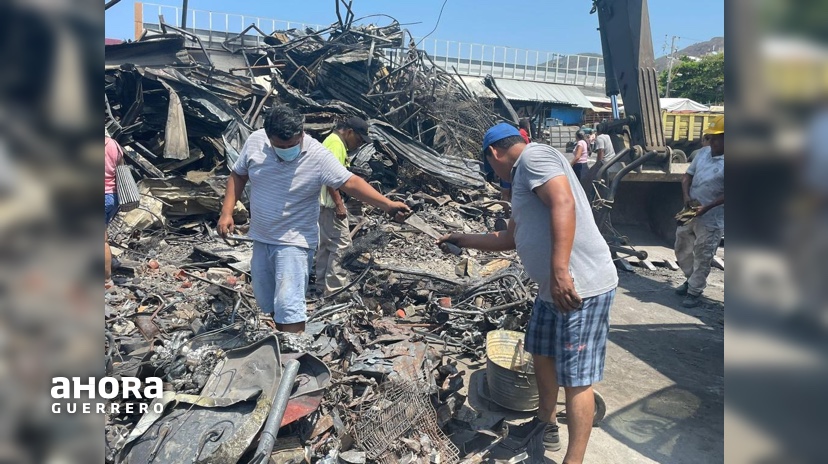 Este martes, Ahora Guerrero, realizó un recorrido en el área afectada, para constatar los trabajos de limpieza en la parte trasera, donde se ubica un estacionamiento público, el personal de Bomberos y Protección Civil municipal, no paraban de retirar los fierros quemados.