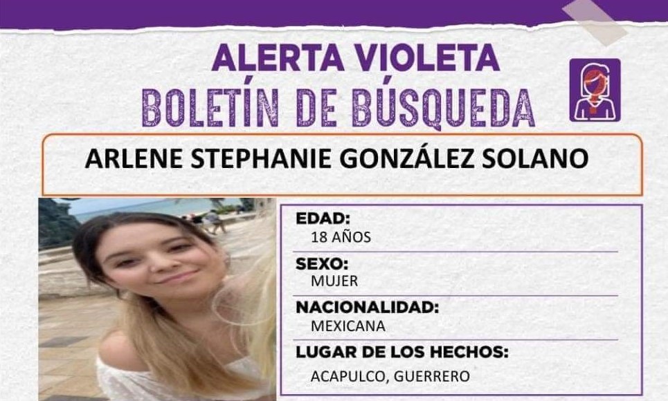 Según con el reporte del protocolo de búsqueda “Alerta Violeta” de la autoridad estatal, la joven fue identificada como Arlene Stephanie González Solano, de 18 años.