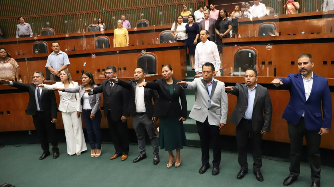En esa misma sesión, por instrucciones de la Mesa Directiva, las y los diputados de la Junta de Coordinación Política encabezados por su presidenta, Yoloczin Domínguez Serna, dirigieron en comisión de cortesía a las y los designados al Salón de Plenos para que rindieran la respectiva protesta de ley.