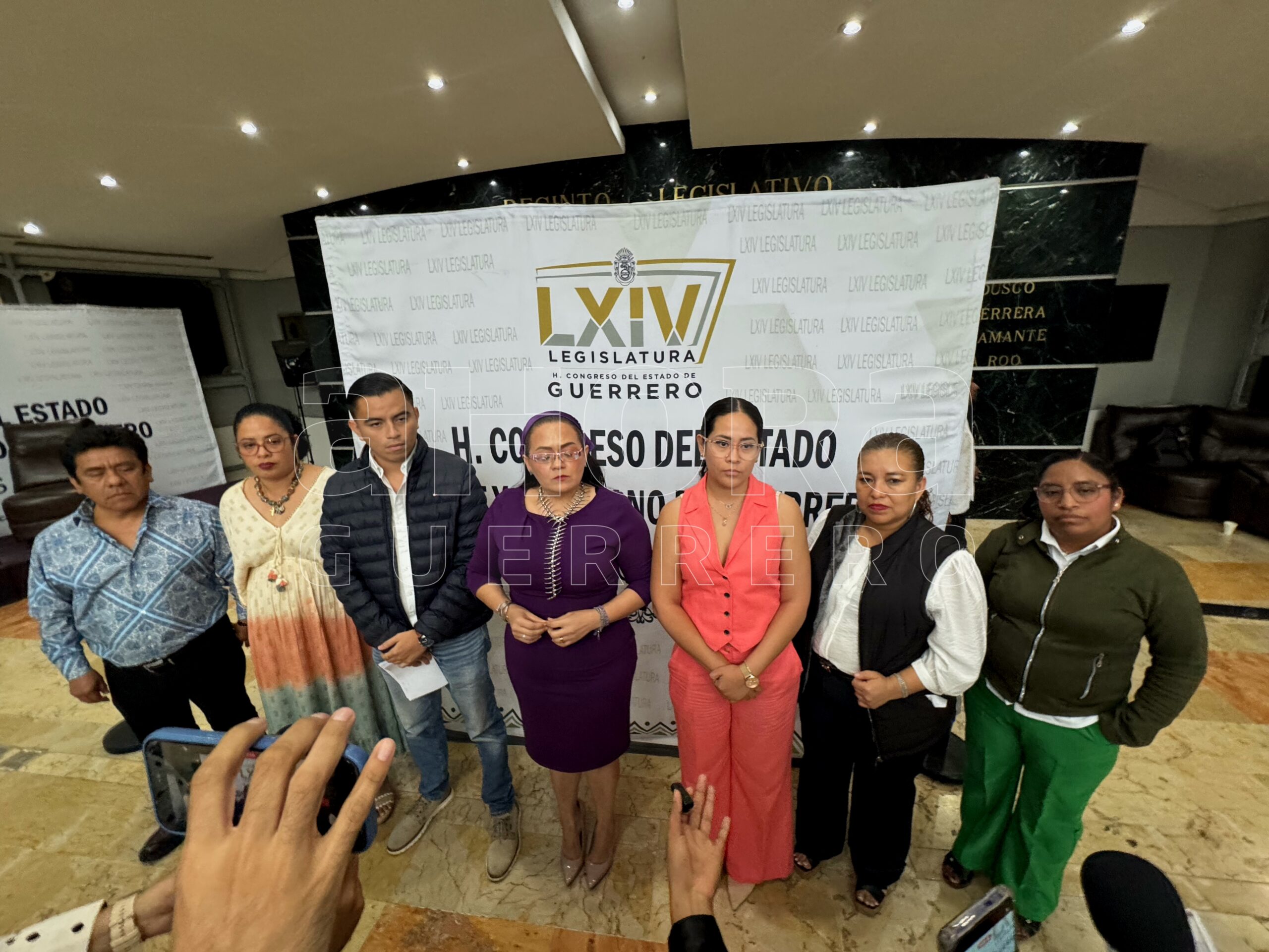 En conferencia de prensa, los diputados Citlali Calixto Jiménez, Marisol Bazán Fernández, Catalina Apolinar Santiago, Glafira Meraza Prudente, así como Claudia Sierra Pérez, Carlos Bello Solano y Aristotles Tito Arroyo, se manifestaron en contra la decisión del diputada del partido Verde.