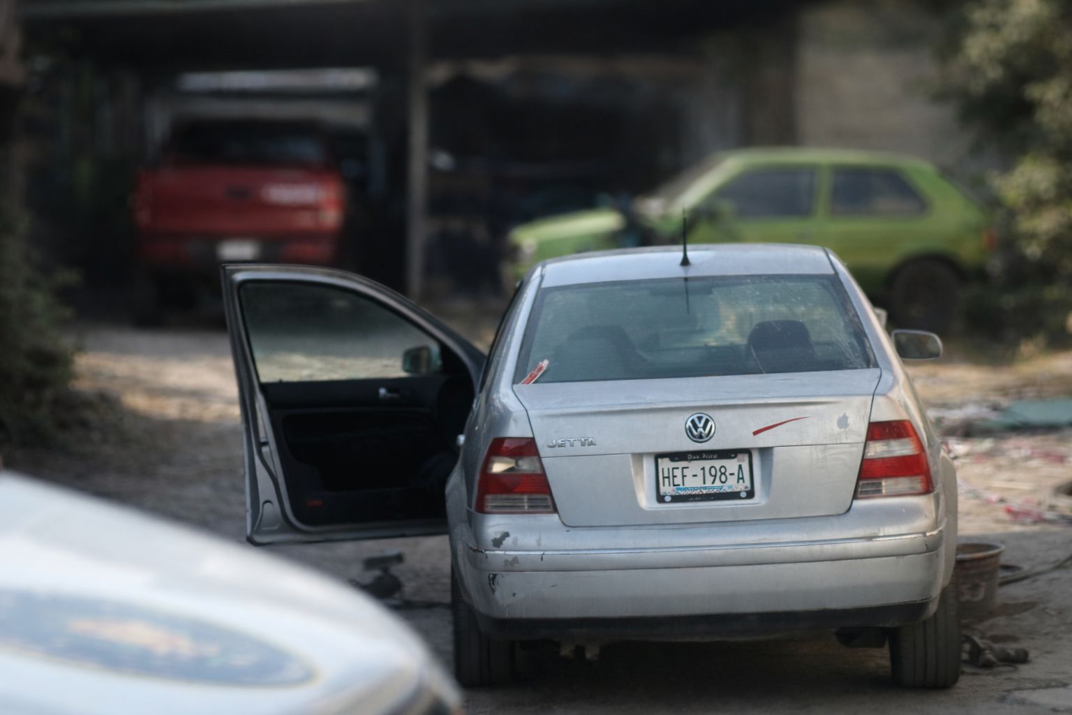 Al arribar las fuerzas de seguridad, localizaron a la víctima en el asiento del conductor de un automóvil Volkswagen, tipo Jetta, color gris, con placas del estado de Guerrero, vehículo que estaba puliendo al momento del ataque.