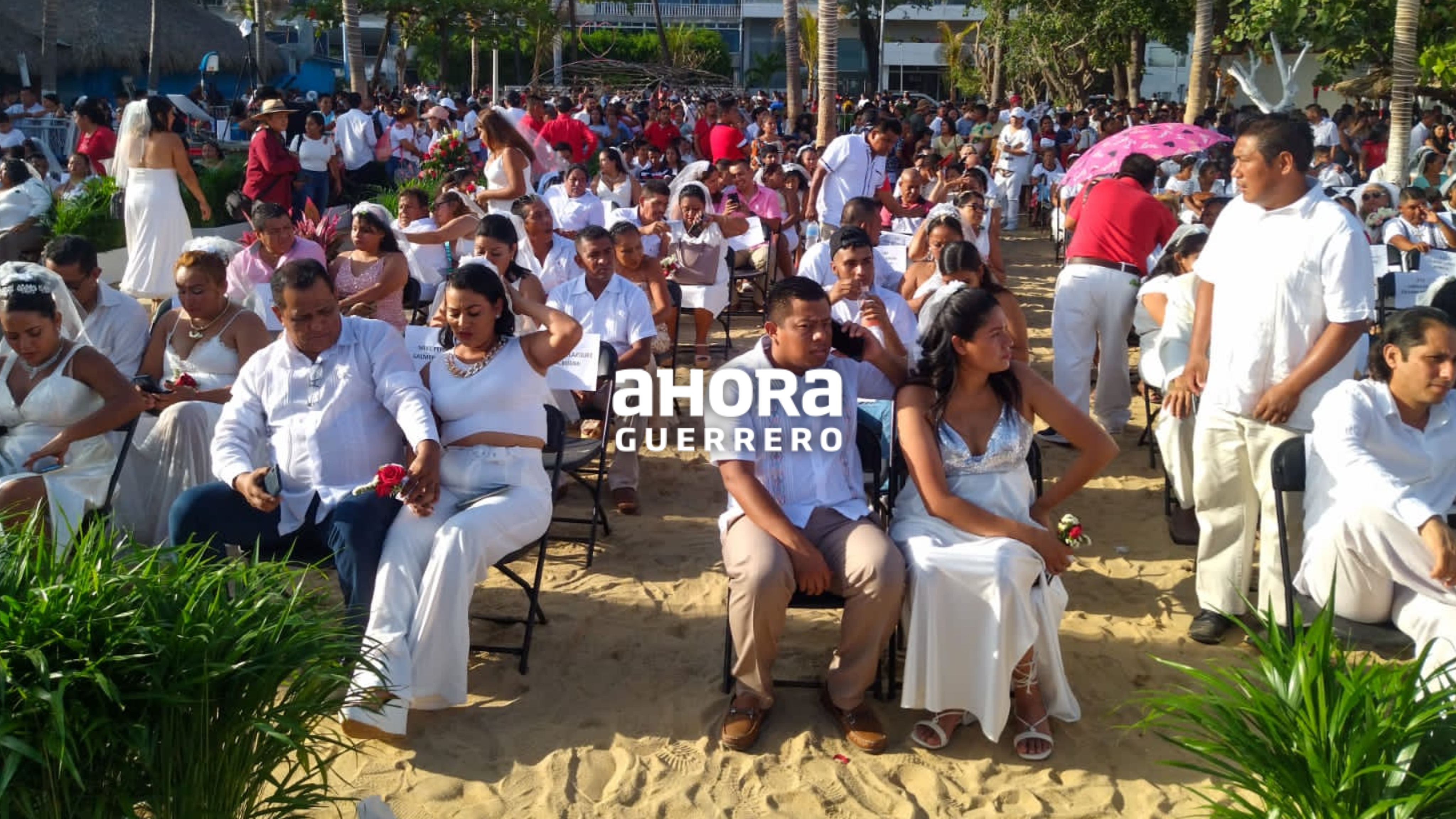 La ceremonia civil se realizó en la playa Tamarindos, ubicada en la Costera Miguel Alemán, la alcaldesa Abelina López Rodríguez, dijo que la unión entre dos personas consolida un pacto de construir un hogar y familia, sobre todo el tejido social en la ciudad turística.