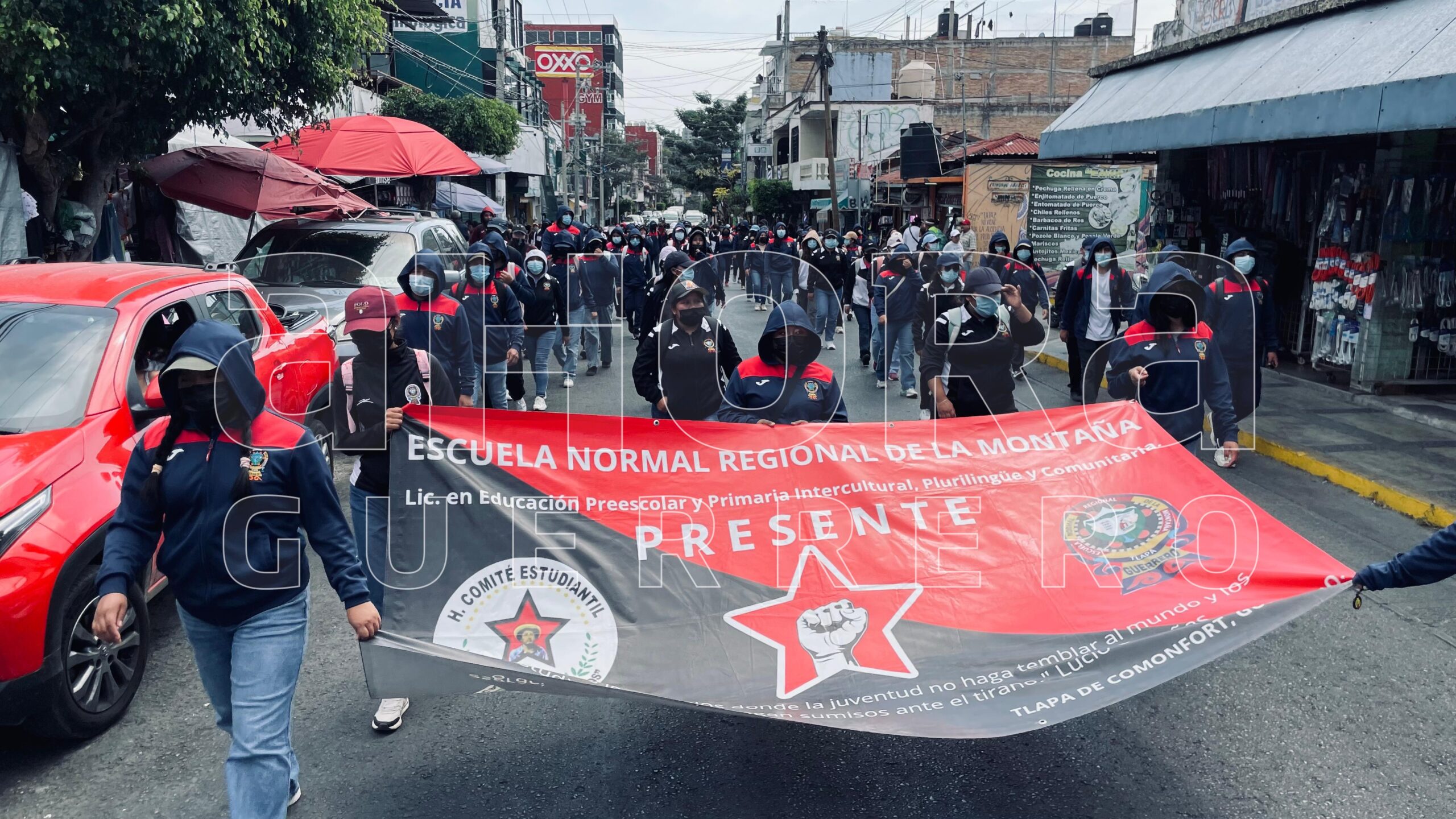Alrededor de las 12:30 de la tarde, un grupo nutrido de estudiantes de las distintas normales públicas de Guerrero, iniciaron una marcha desde el monumento a Las Banderas, hacia el centro de la ciudad.