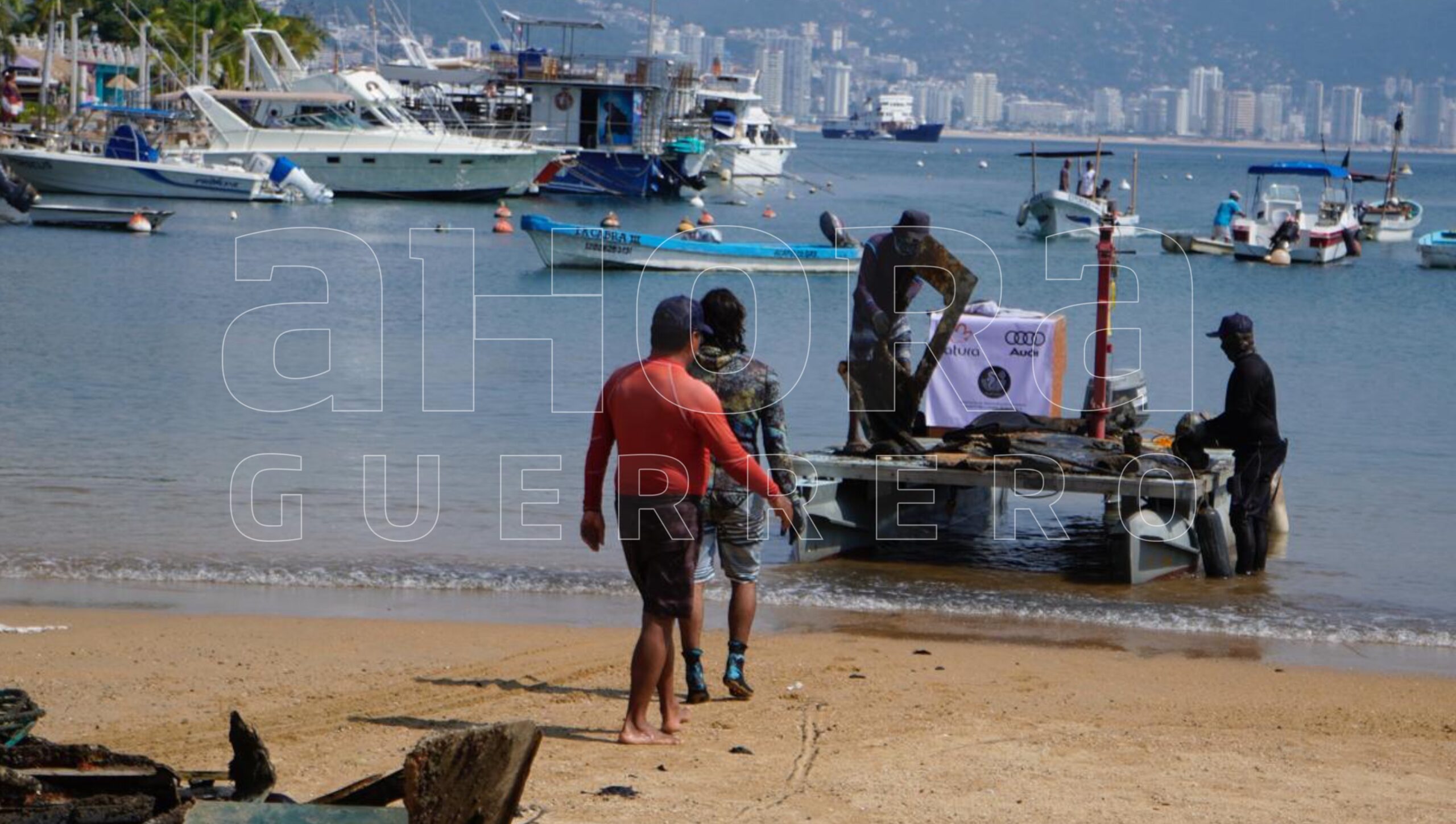 Acapulco, Gro., A 18 de noviembre del 2025.- Este martes autoridades de Fonatur y ambientalistas pusieron en marcha la descontaminación de playa Manzanillo ubicada en la zona tradicional de Acapulco, misma que fue utilizada como astillero tras el paso del huracán “Otis”.