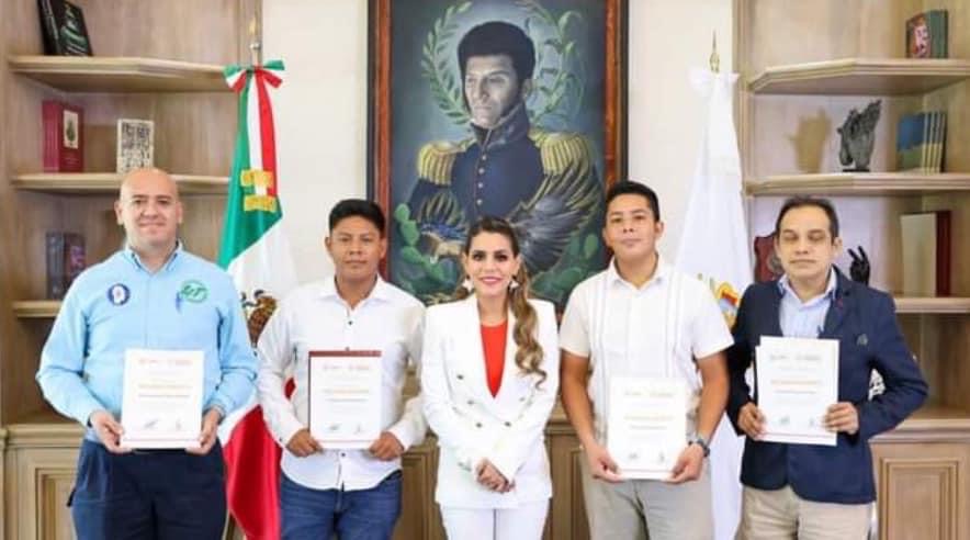 En Casa Guerrero la gobernadora Evelyn Salgado, junto al director general del Consejo de Ciencia, Tecnología e Innovación Guerrero, Miguel Ángel Rendon Liborio, recibió a los jóvenes Eliezer Solano Martínez, Arturo Enrique Flores Peñaloza, Eduardo de la Cruz Gámez y Leónides Carmona Vázquez.