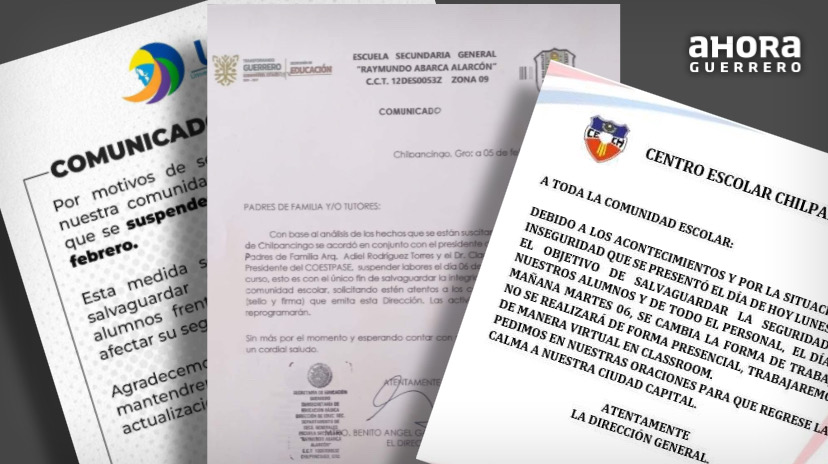 Ante la falta de transporte público en Chilpancingo, derivado de la jornada de violencia de este lunes, escuelas públicas y privadas de todos los niveles educativos, han anunciado la suspensión de actividades escolares para el martes 6 de febrero; la Secretaría de Educación Guerrero no ha fijado postura.