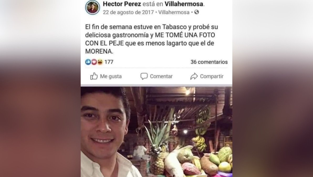 “¿Todas las personas de Tabasco hablan igual que el pejelagarto? O ¿Sí tuvieron estudios?”, dice otro de los presuntos tuits de Héctor Pérez.