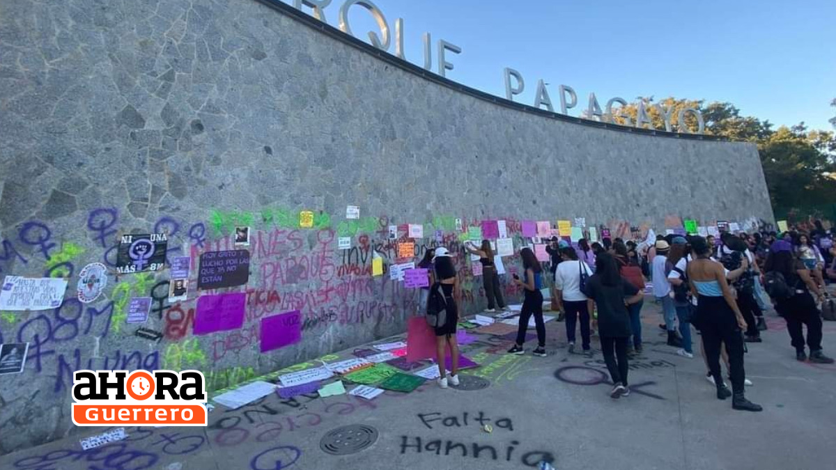 Acapulco. – Feministas se pronunciaron en contra de la violencia de género en Acapulco, vieron la oportunidad de realizar pintas en la recién inaugurada entrada del Parque Papagayo, donde plasmaron mensajes y denuncias.