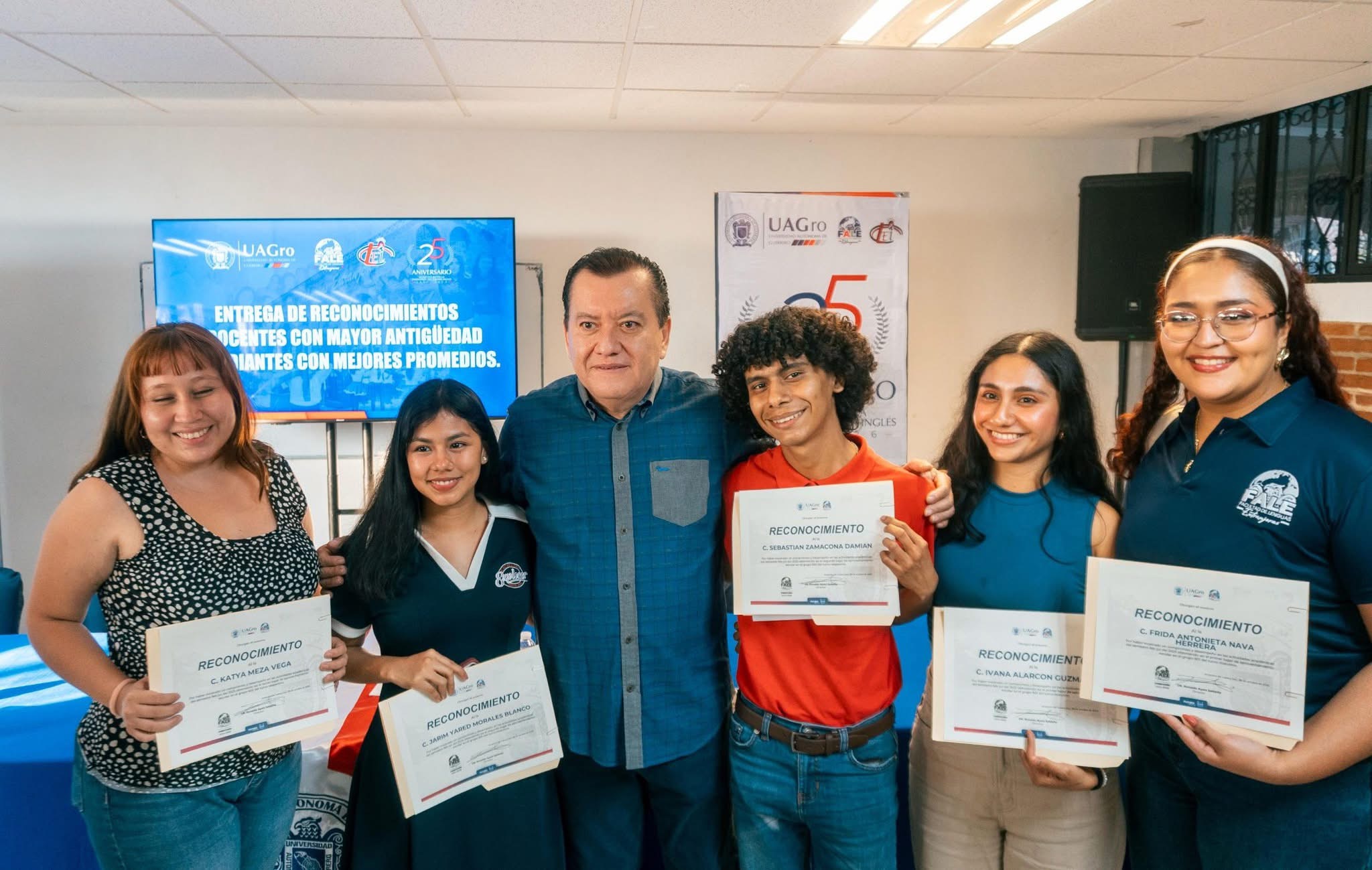 Chilpancingo, Gro.– La Facultad de Lenguas Extranjeras de la Universidad Autónoma de Guerrero conmemoró su vigésimo quinto aniversario con una ceremonia encabezada por el rector Javier Saldaña Almazán, en la que se reconoció la trayectoria de docentes fundadores y el desempeño académico de estudiantes destacados.