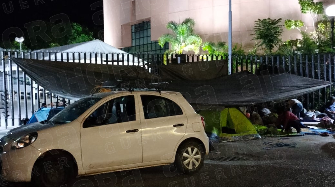 La noche de este martes, integrantes del Frente Popular de la Montaña, trasladaron su plantón al exterior del recinto del Poder Legislativo, como parte de su serie de protestas para buscar atención de autoridades.