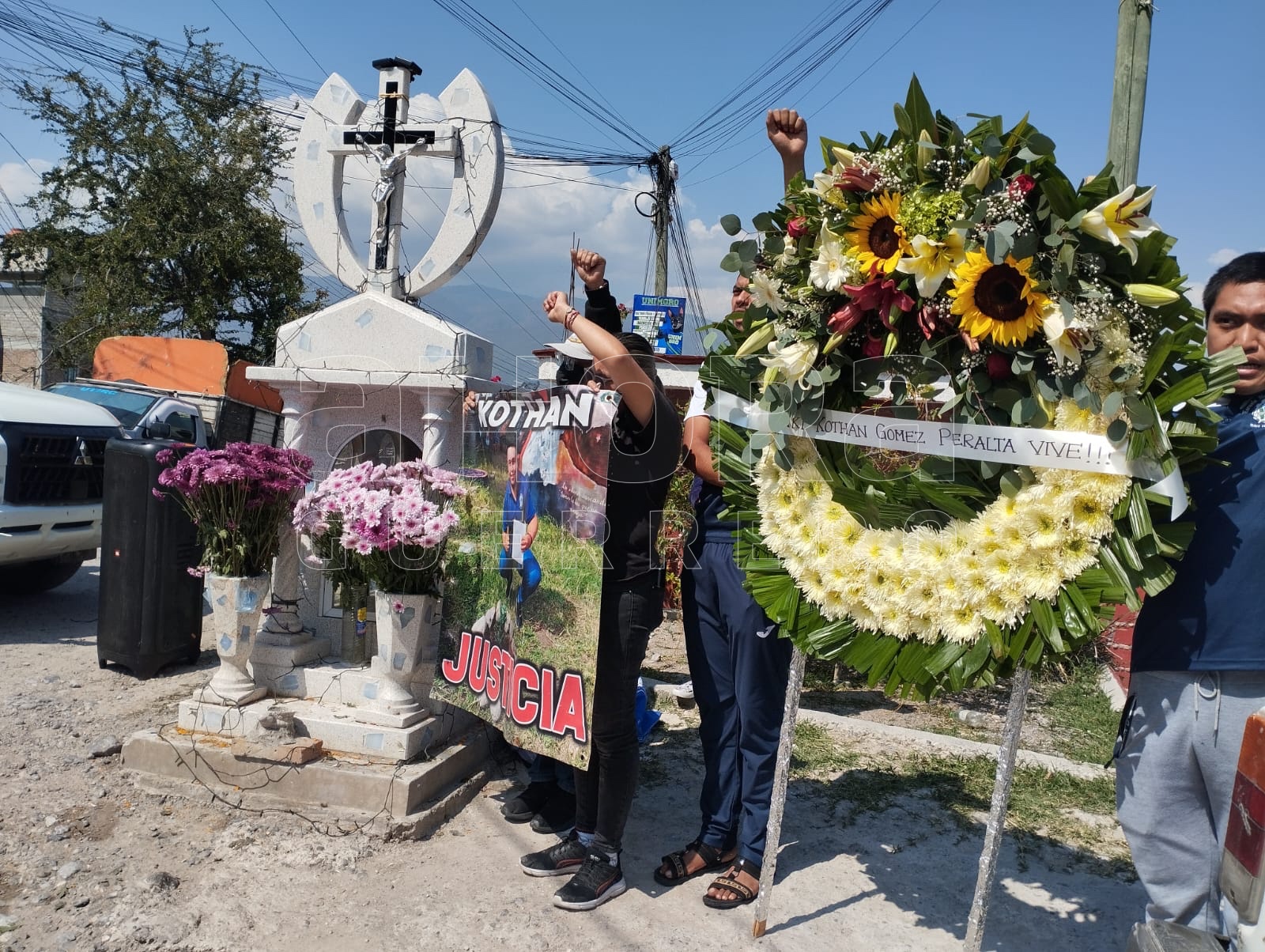 Un grupo de aproximadamente 100 normalistas, llevó a cabo una protesta en el crucero de la colonia Cuitláhuac, al oriente de Chilpancingo, donde Yanqui Kothan fue atacado por policías estatales.