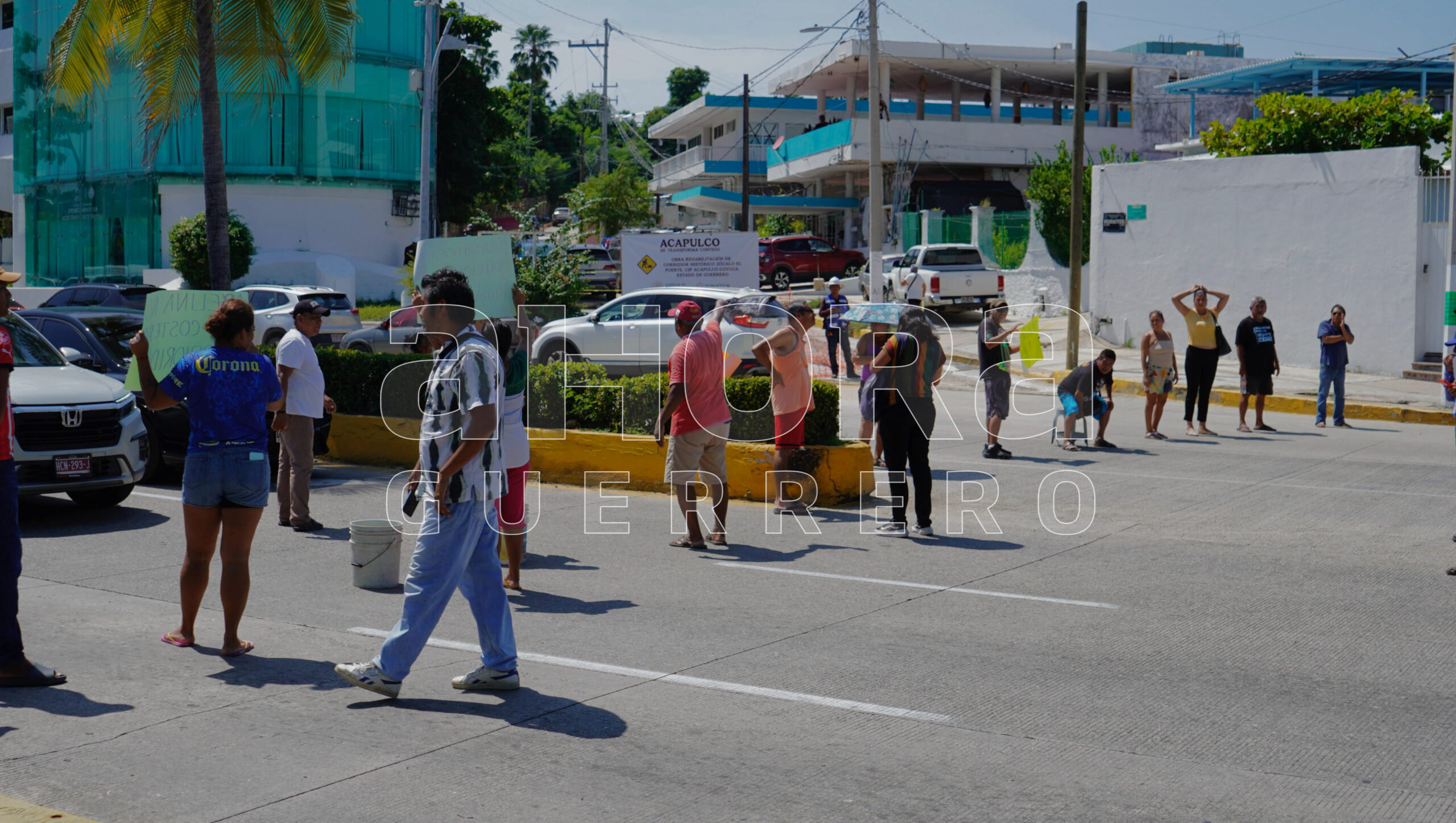 Acapulco, Gro., A 21 de octubre del 2025.- La tarde de este martes vecinos del barrio de “Petaquillas” ubicado en la colonia Centro de Acapulco, bloquearon la avenida costera Miguel Alemán de Acapulco ante la falta de agua potable.