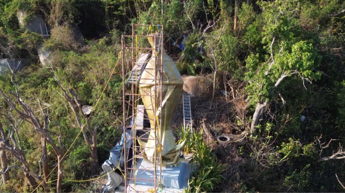 Por su parte, el escultor Froylán Centeno señaló que el traslado y montaje de la imagen representó un reto considerable debido al peso de las piezas, las cuales tuvieron que ser transportadas en lanchas hasta la isla y posteriormente cargadas por senderos del cerro hasta su ubicación final.
