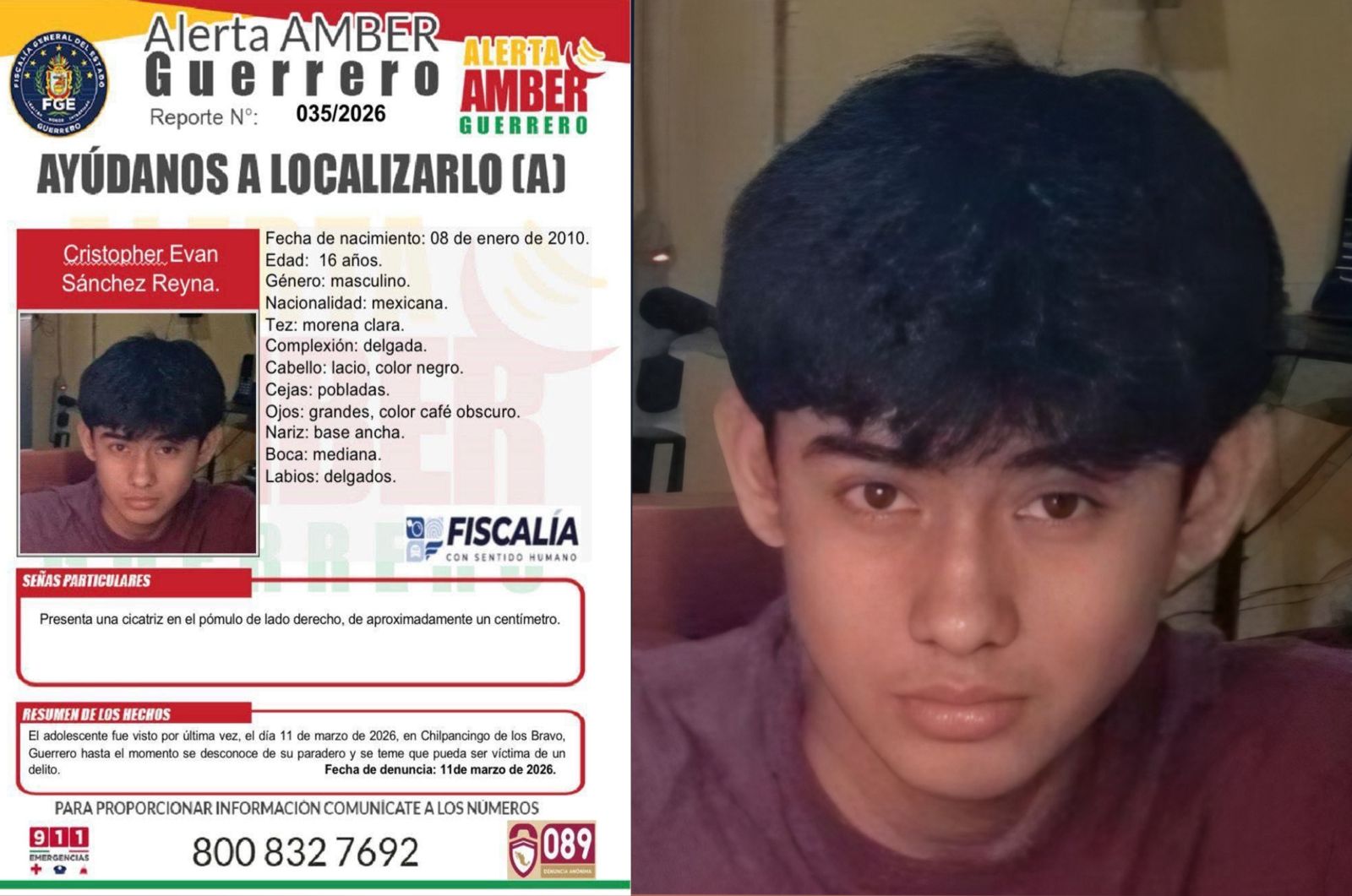 Christopher Evan desapareció el 11 de marzo, luego de asistir a clases en el Colegio de Bachilleres, plantel Chilpancingo.
