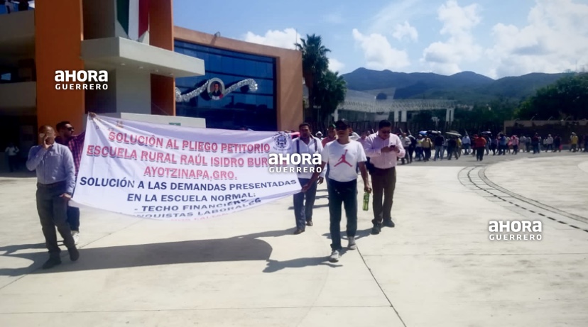 Personal administrativo y docentes de la Escuela Normal Rural “Raúl Isidro Burgos” de Ayotzinapa, irrumpieron en las instalaciones del Recinto Oficial del Poder Ejecutivo (antes Palacio de Gobierno) para demandar la atención al pliego petitorio y buscar una audiencia con la gobernadora, Evelyn Salgado.
