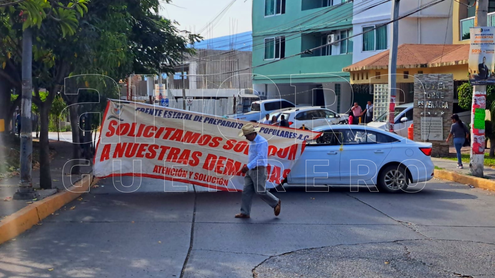 Maestros de preparatorias populares en Guerrero, respaldados por padres de familia y alumnos, iniciaron un bloqueo en los dos sentidos de la avenida Lázaro Cárdenas, a la altura del hemiciclo a Juárez; anuncian que marcharán al Parador del Marqués, para exigir atención a demandas.