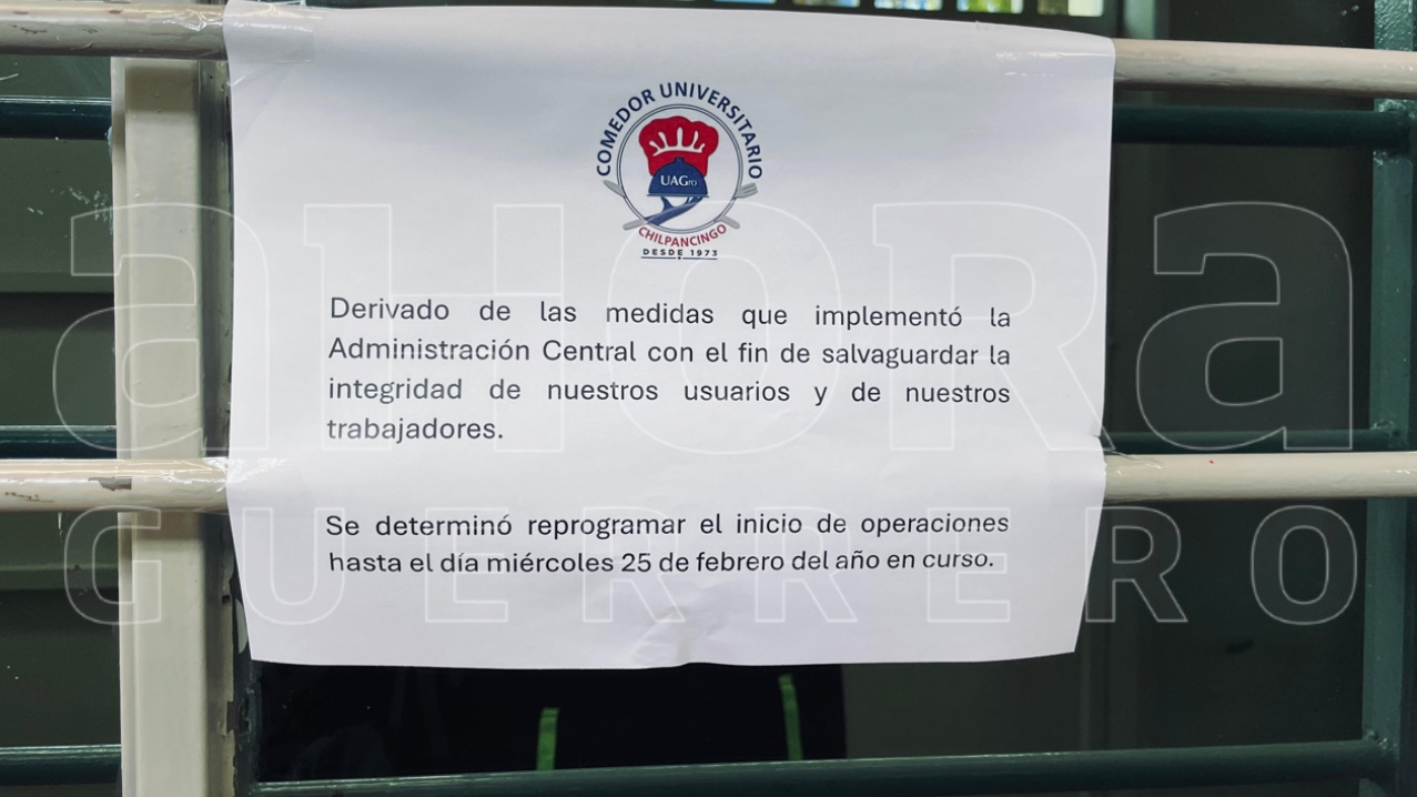 La Universidad Autónoma de Guerrero (UAGro), confirmó que la reapertura del Comedor Universitario de Chilpancingo, ubicado cerca de la alameda Francisco Granados Maldonado, será a partir del día miércoles, tras la suspensión de actividades.