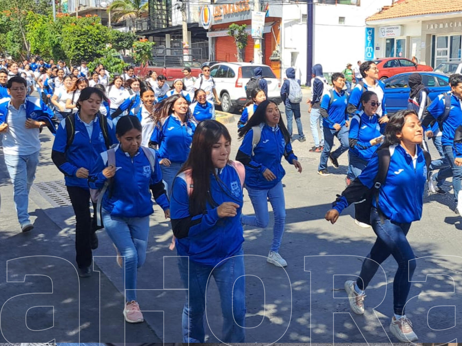 Los jóvenes partieron del hemiciclo a Juárez y bloquearon el bulevar Vicente Guerrero para exigir una mesa de diálogo con autoridades educativas y del gobierno estatal, a fin de resolver sus demandas para el ciclo escolar 2025-2026.