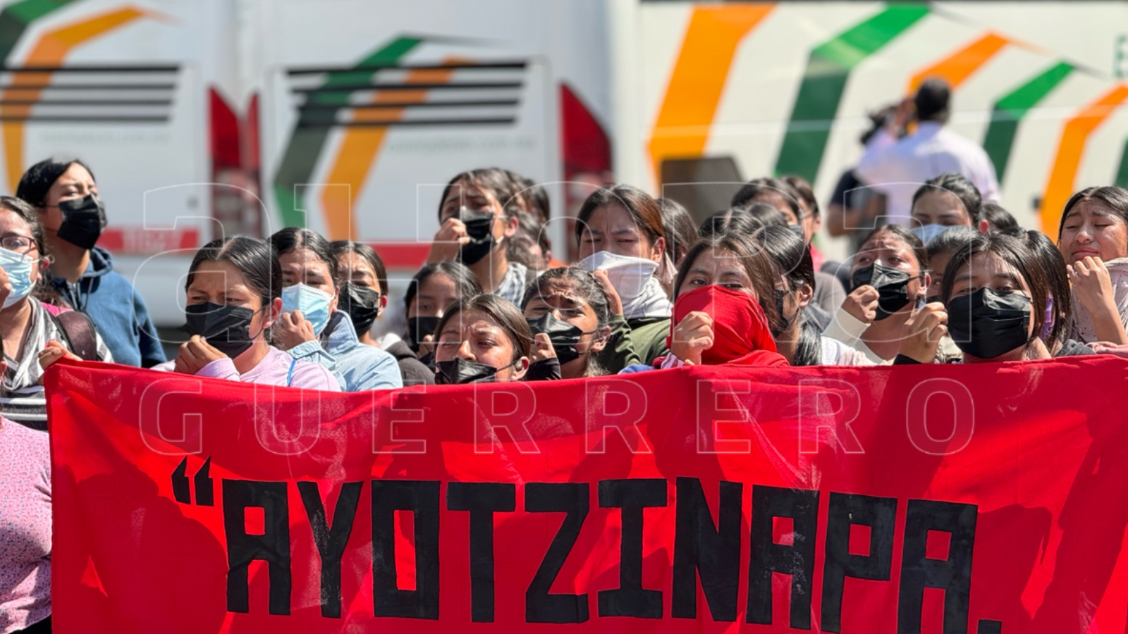 La mañana de este jueves, a bordo de 11 autobuses, estudiantes de las normales rurales del país, arribaron al exterior del Recinto Oficial del Poder Ejecutivo, antes Palacio de Gobierno, para conmemorar un año más del violento desalojo de la Autopista del Sol.