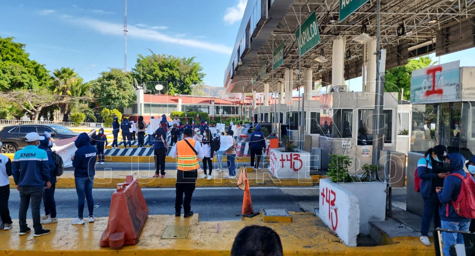 Para demandar condiciones igualitarias para los procesos de obtención de plazas, estudiantes de la Escuela Normal Regional de la Montaña (ENRM), tomaron este día la caseta de cobro de Palo Blanco, en Chilpancingo.