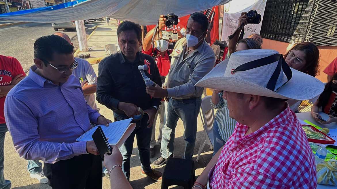 La notificación se llevó cabo en la puerta de acceso principal del Congreso, donde se encuentran los trabajadores en paro con su bandera rojinegra, ante la fe del notario público 2 del Distrito Judicial de Los Bravo, Emilio Ortiz Uribe, y fue recibida por el secretario general del sindicato, Fernando Martínez Román, quien aceptó la propuesta de diálogo.