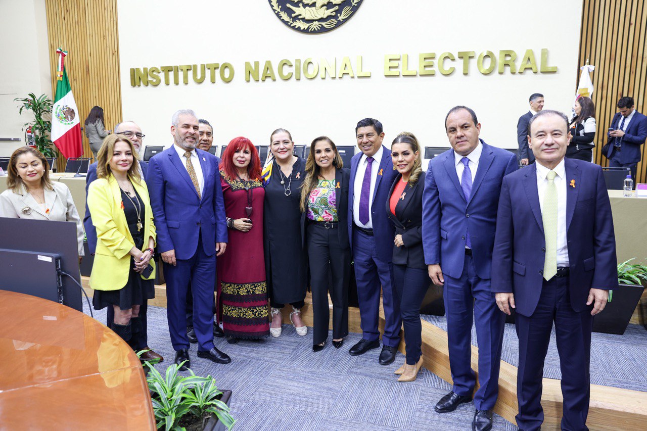 Participaron el presidente de la CONAGO, gobernador de Oaxaca, Salomón Jara; la presidenta consejera del INE, Guadalupe Taddei Zavala; así como las y los gobernadores, así como representantes de las entidades federativas del país.
