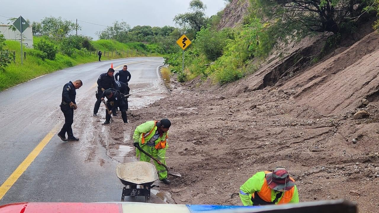 Durante dichos recorridos, se visualizó un derrumbe de tierra de aproximadamente 10 metros sobre el Nuevo Libramiento a Tixtla, como consecuencia de las fuertes lluvias presentadas el cual obstruía el paso de un carril, por lo cual agentes de la Policía Estatal, con apoyo de personal de la SCIT, retiraron tierra para poder liberar ambos carriles y dar vialidad a los automovilistas con las debidas precauciones, para así evitar algún tipo de accidente.