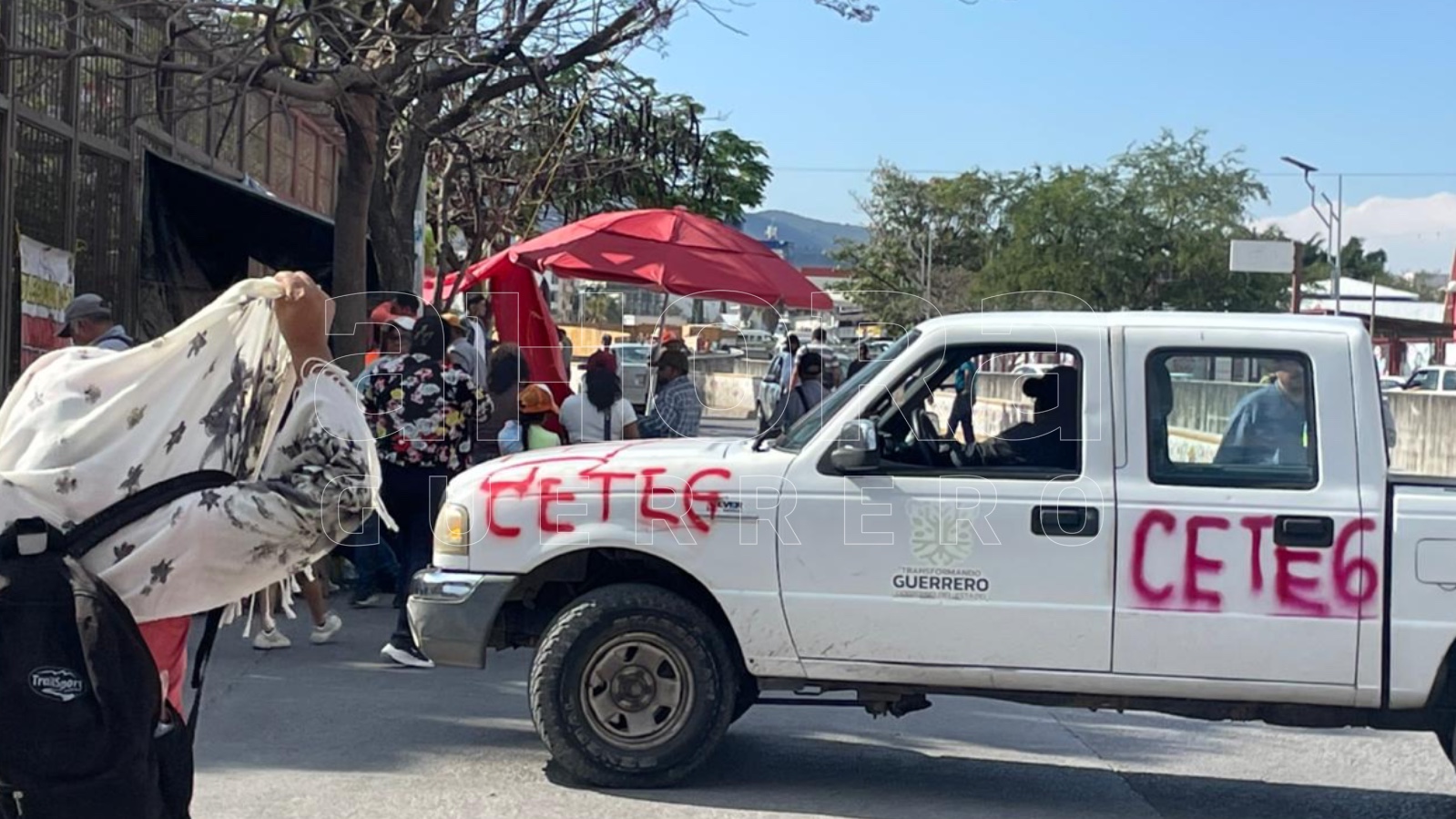 Durante la movilización, los maestros vandalizaron una patrulla de la Guardia Nacional, en la cual escribieron CNTE-CETEG, con aerosol e intentaron ingresar por la fuerza en el Congreso de Guerrero.