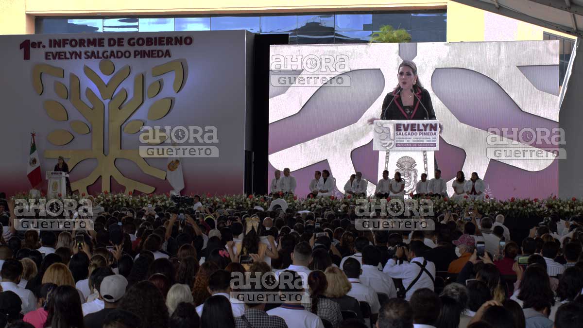 Minutos antes de las 12 del día de este lunes, la gobernadora de Guerrero, Evelyn Cecia Salgado Pineda rindió su Primer Informe de Gobierno en la explanada de la sede del Poder Ejecutivo acompañada de la líder del Congreso, del presidente del Tribunal Superior de Justicia, funcionarios del Gobierno Federal, entre ellos Jorge Alcocer quien fue en representación del presidente de México, Andrés Manuel López Obrador, así como mandos de la Secretaría de la Defensa Nacional y la Marina.