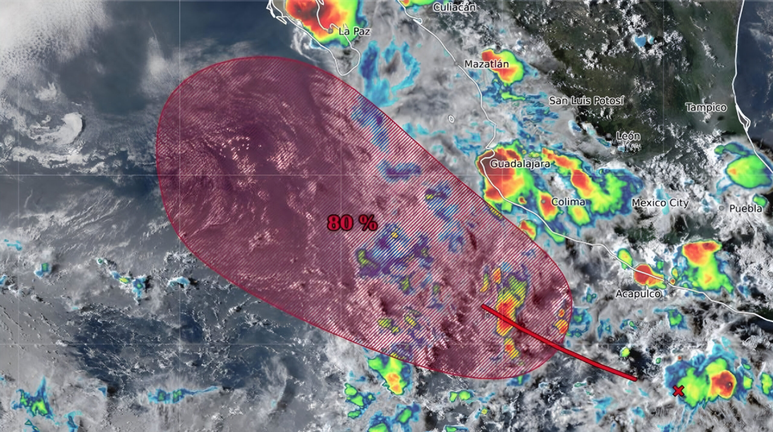 De acuerdo con la Comisión Nacional del Agua (Conagua), el sistema se ubica a 315 kilómetros al sur de Punta Maldonado y mantiene un 50 por ciento de probabilidad de desarrollo ciclónico en 48 horas, que podría aumentar hasta un 80 por ciento en los próximos siete días. Se desplaza hacia el oeste-noroeste con una velocidad de entre 16 y 24 kilómetros por hora.