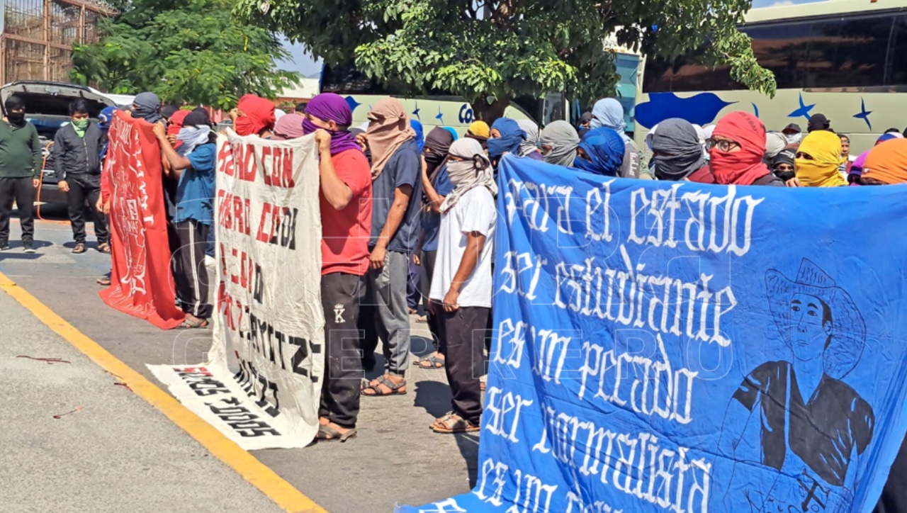 La mañana de este lunes, los representantes de los colectivos, junto con un centenar de estudiantes de Ayotzinapa, arribaron al exterior del Recinto Oficial del Poder Ejecutivo, donde por más de una hora llevaron a cabo un mitin de protesta.