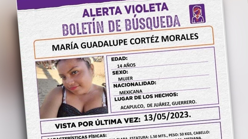 La joven de nombre María Guadalupe Cortés Morales tiene 14 años y desapareció el pasado 13 de mayo.