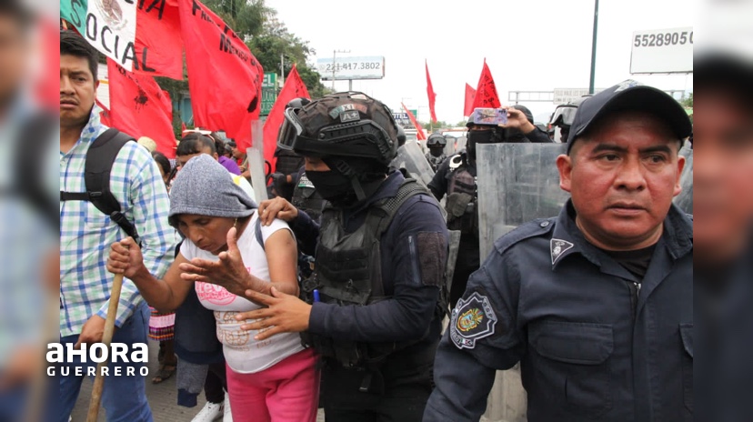 Policías del Estado con equipo antimotin, se enfrentaron a pobladores indígenas y damnificados del 2013, quienes durante una hora bloquearon parcialmente la autopista del Sol en Chilpancingo, para pedir la atención a distintas demandas.