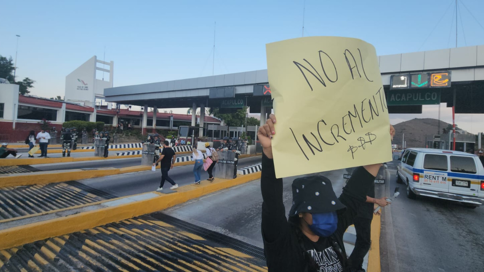 Minutos después de las 5 de la tarde, un grupo de 50 periodistas arribó a la caseta concesionada a CAPUFE, para manifestar su desacuerdo ante el incremento a las tarifas de las casetas ubicadas sobre la autopista del Sol.