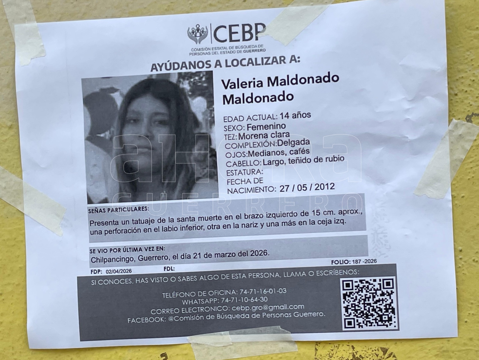 Por esta situación, y al ver las acciones de búsqueda que realizan colectivos de desaparecidos, la familia de Valeria viajó a Chilpancingo para realizar la pega de fichas en bases de urvans del servicio de transporte foráneo y espacios públicos.
