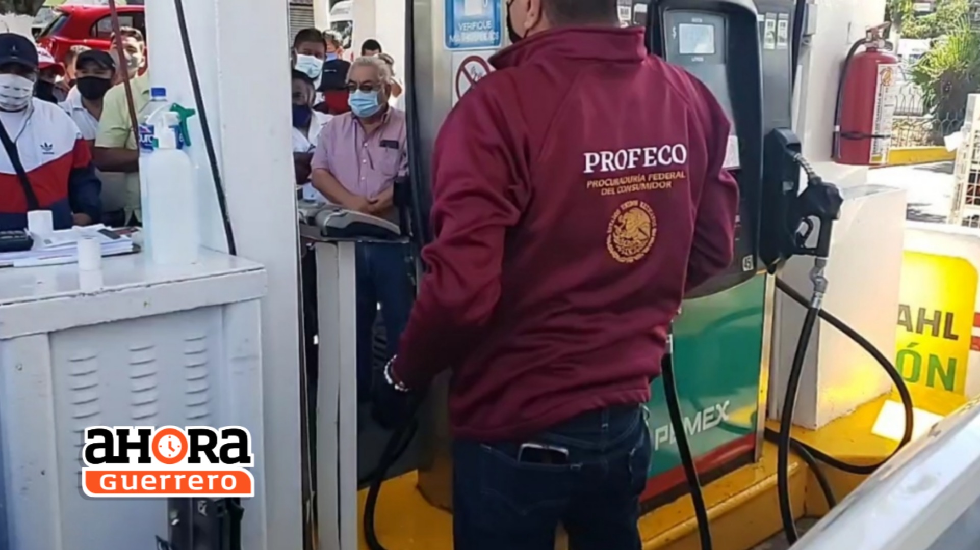 Personal de la Procuraduría Federal del Consumidor (Profeco) realiza una verificación en las gasolinerías de Chilpancingo, luego de la denuncia de organizaciones de la vente de litros incompletos.