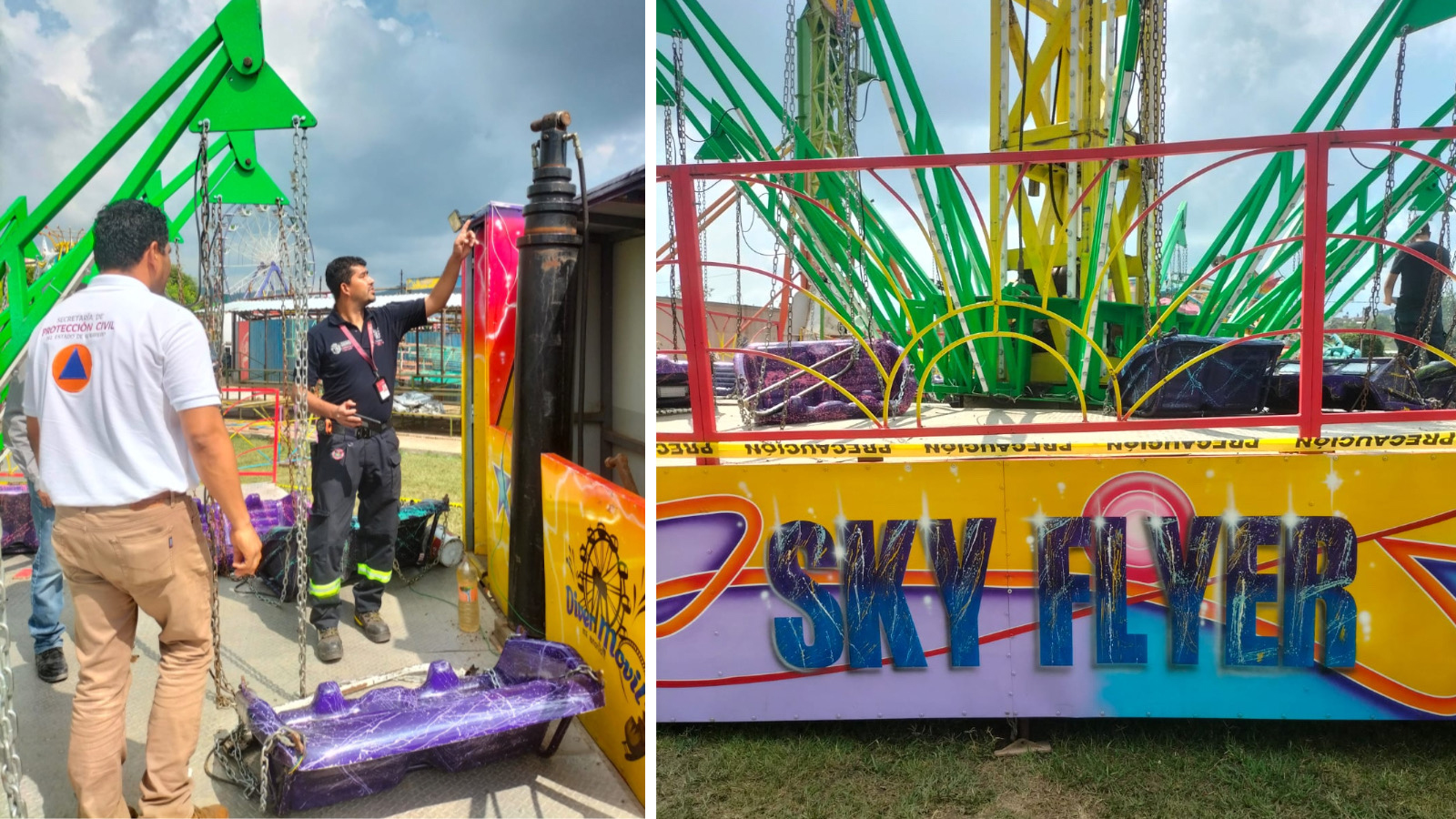 De igual modo, este domingo, instruyó al Director General de Sistemas de información de Riesgos, Víctor Gabriel Flores Vela, para que con un grupo de inspectores, supervisara las condiciones físicas de dichos juegos mecánicos, a fin de evitar futuros accidentes, que representen un riesgo para la población.