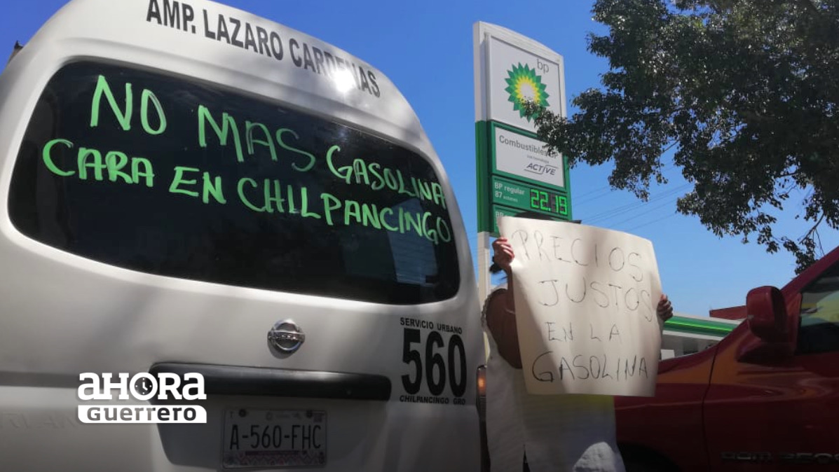 Con pancartas de protesta, choferes de taxis, así como urvans del transporte público de rutas foráneas, llevaron a cabo una protesta en las gasolineras que existen en la capital de Guerrero.